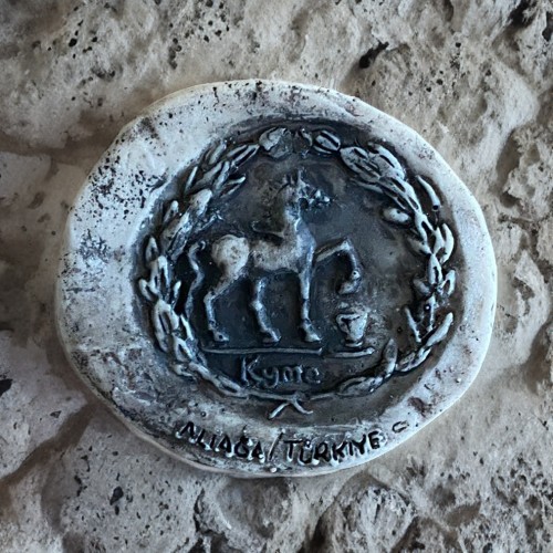Tarihte ilk parayı Lidyalılar basmıştır. Ancak yapılan kazılarda Aliağa’da yer alan Kyme Antik Kenti’nin de ilk para basan kentlerden biri olduğu ortaya çıkmıştır. Kyme sikkelerinde sık kullanılan tasvirler arasında at figürleri yer almaktadır. Bu sikke Amerika Birleşik Devletleri Boston Güzel Sanatlar Müzesinde sergilenmektedir.