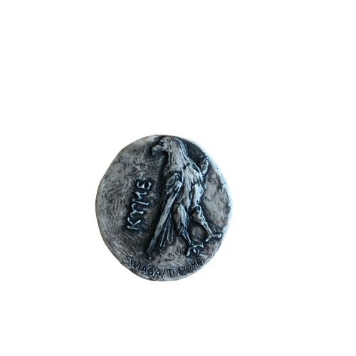 Aliağa’da yer alan ve Batı Anadolu’nun önemli antik kentlerinden biri olan Kyme’ye ait bir sikkedir. MÖ 320-250 yılları arasında üretilmiştir. Hammaddesi gümüş olan sikkenin üzerinde ayakta duran bir kartal geriye bakarken tasvir edilmiştir. Amerika Birleşik Devletleri Boston Güzel Sanatlar Müzesinde sergilenmektedir.